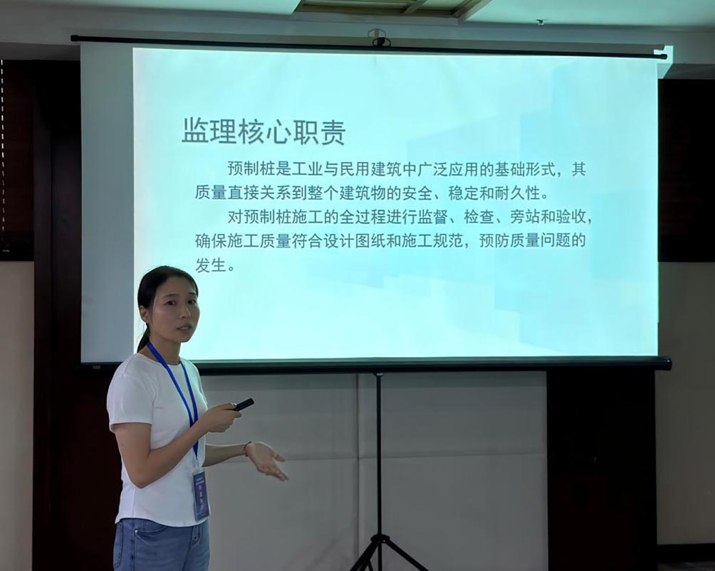 相较于笔试现场的安静,监理方案陈述竞赛环节则充满了思想的碰撞与语言的交锋。该环节模拟真实项目背景,要求各参赛队针对给定的题目,在限定时间内独立陈述一份方案报告。舞台上,选手们思路清晰、侃侃而谈,通过精美的PPT、严谨的逻辑和流利的表达,全面阐述其监理工作的策划思路、控制要点、方法措施及风险预案。选手们沉着应对,见解独到,充分展现了新时代监理人员不仅“会做”、更能“善言”的全面素养。